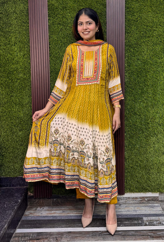 Designer Anarkali Lehenga in Pure Banarasi Fabric with Matching Dupatta and Spaghetti Style Girlish Blouse