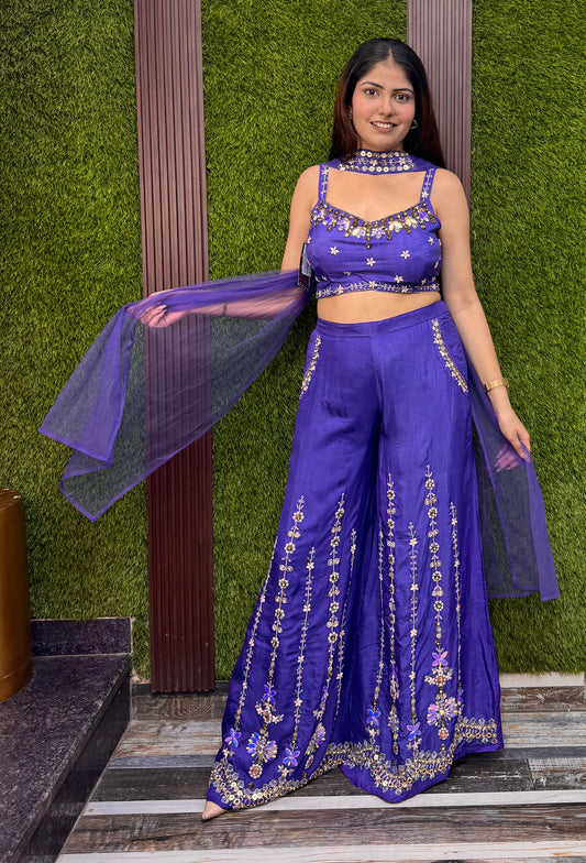 PDP Style Hand Work Crop Top Sharara With Choker Dupatta