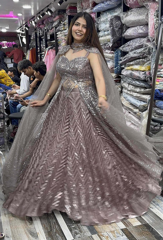 Handworked Indo-Western Pleated Lehenga with Designer Long Upper & Separate Cape