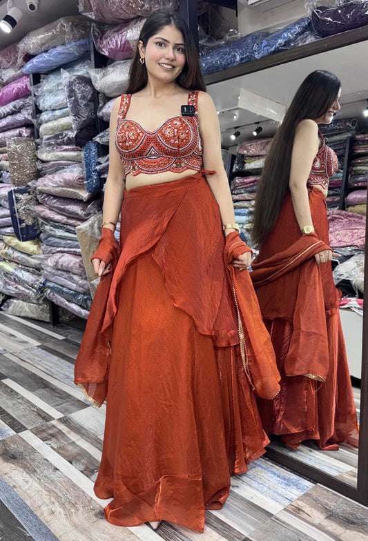 Handworked Lehenga Choli with Girlish Blouse & Wrap-Around Organza Skirt Set