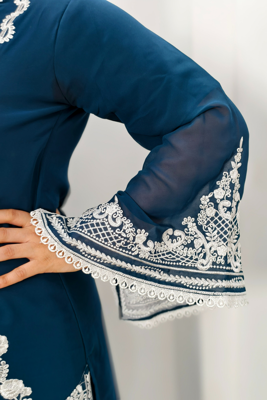 Elegant Mirror Work Embroidered Kaftans in Crepe