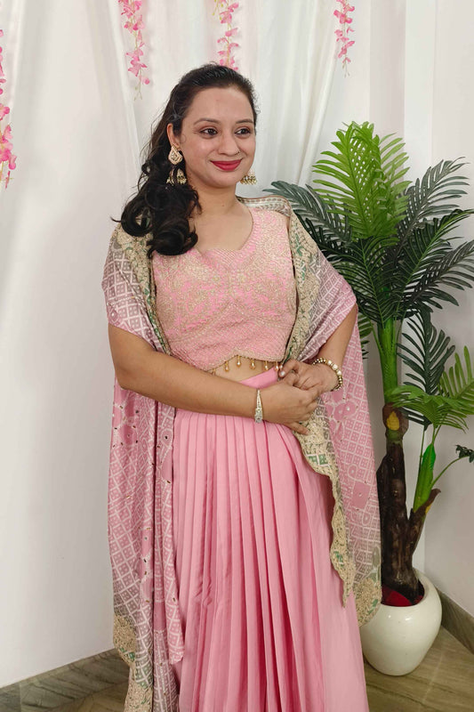 Indo western Drape Dress With Embroidered Overshrug in Lotus pink