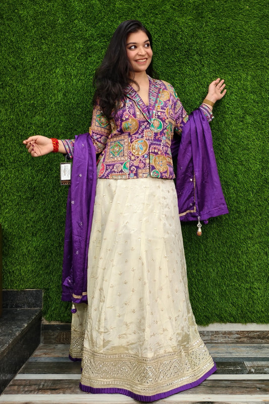 Indo Western 3 Piece Dress with Shrug In Purple