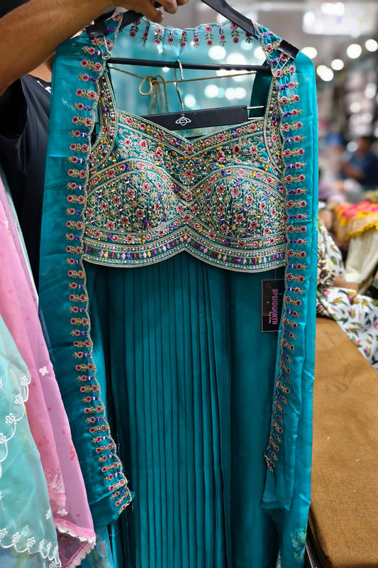 Indo Western Dress with Shrug in Firozi