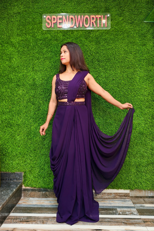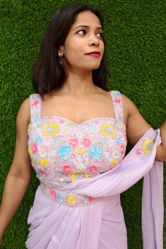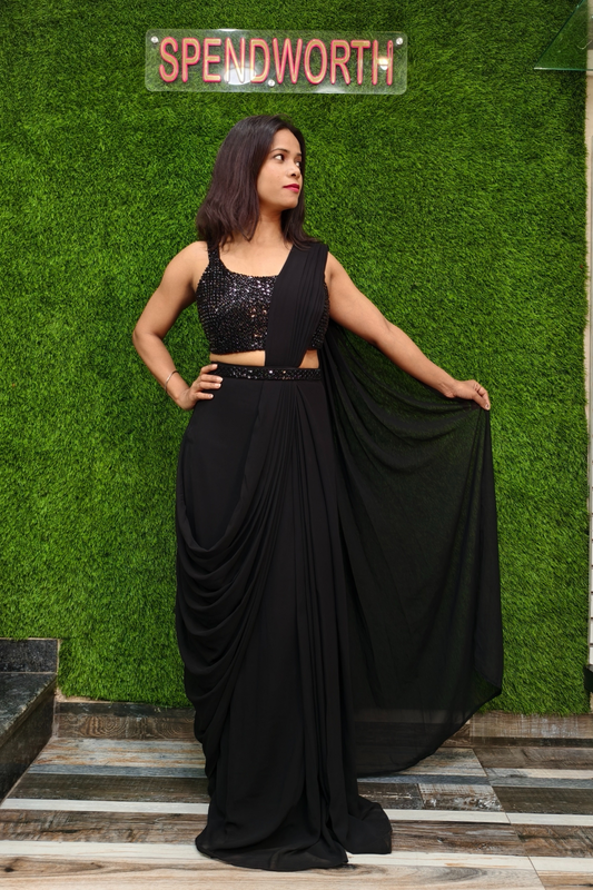 Ready To Wear Drape Dress With Hand Embellished Blouse