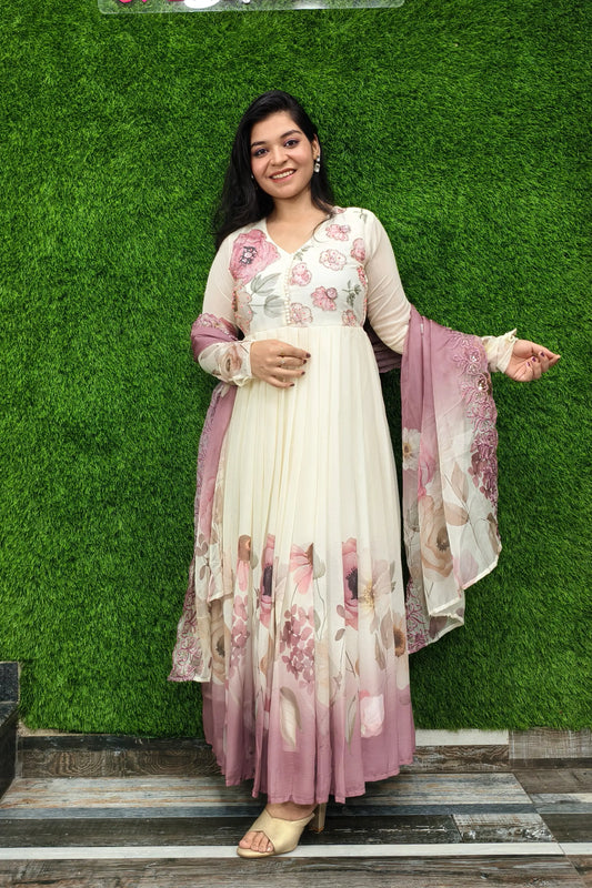 Pure Chiffon Printed Anarkali Partywear Kurta Set With Duppatta