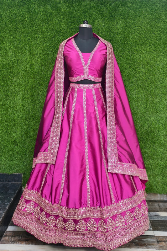 Pure Silk Anarkali Lehenga Choli In Hot Pink