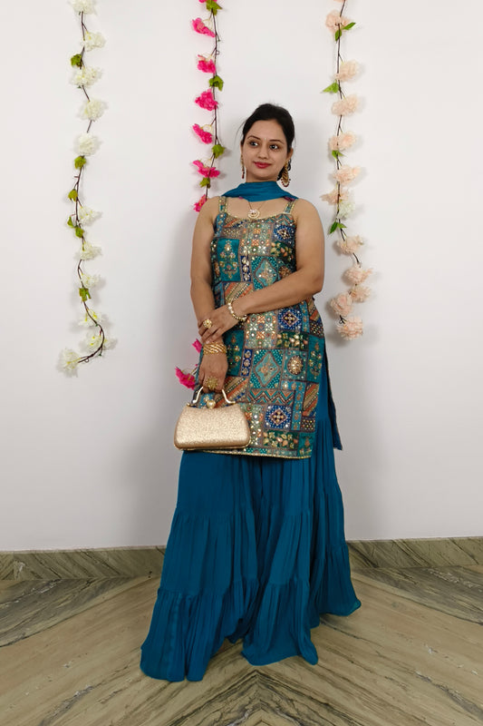 Spagheti Style Girlish Straight Sharara Suit In Pure Banarasi Fabric in Firozi
