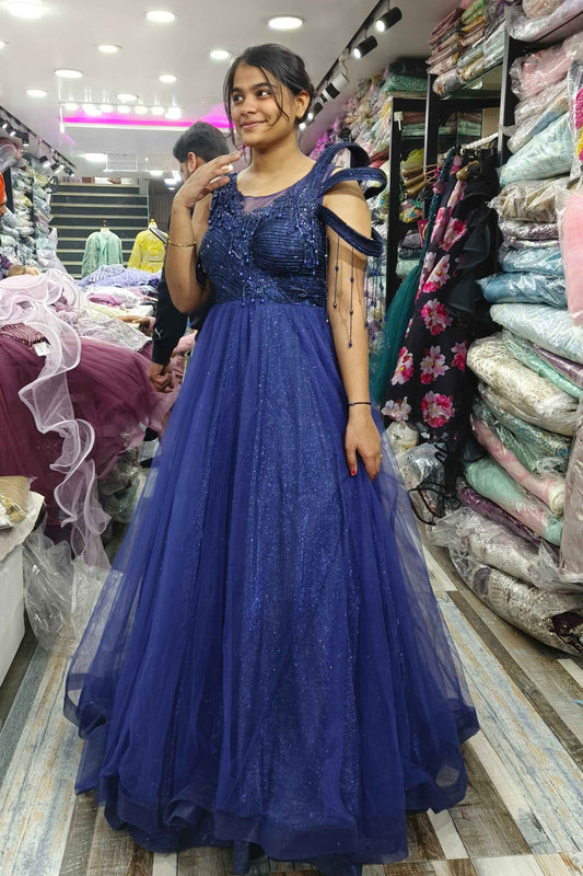 Shimmer Fabric Partywear designer Gown With Beautiful Yoke Designing