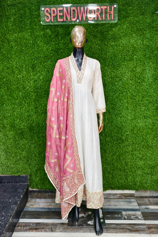 Silk Embroidered Anarkalis With Contrast Duppattas