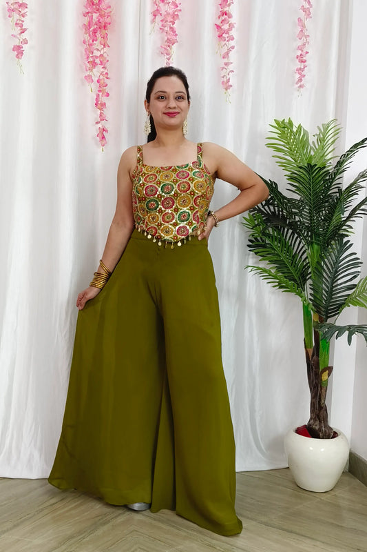 Designer Crop Top With Sharara Partywear Dress For Mehendi Occasion