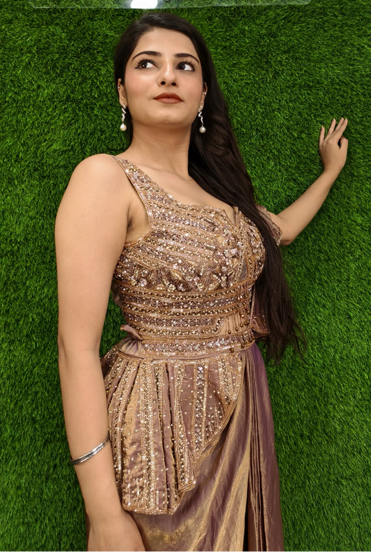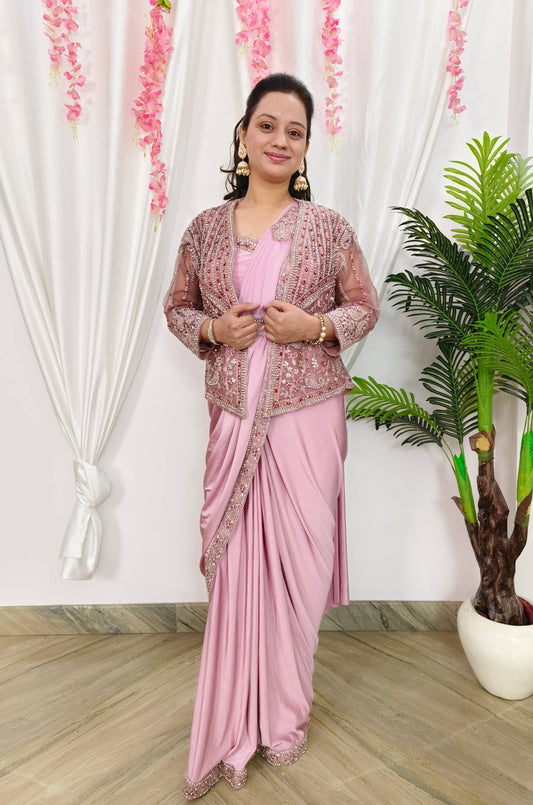 Designer Ready to wear Drape Saree With Separate Waist belt And Embroidered Jacket in Mauve