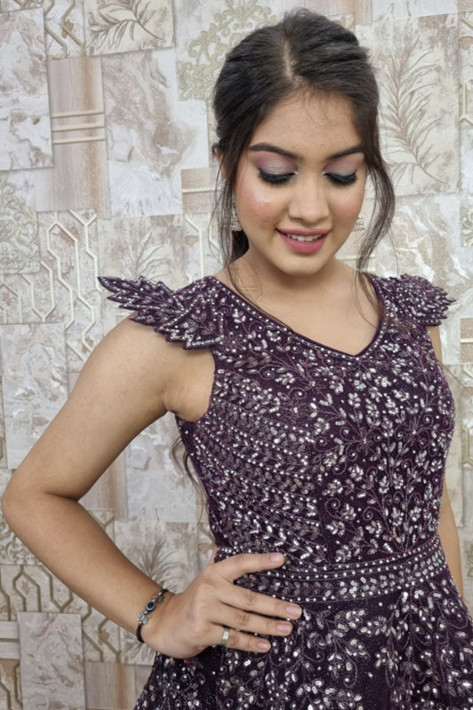 Shimmer Fabric Partywear designer Gown With Beautiful Yoke Designing