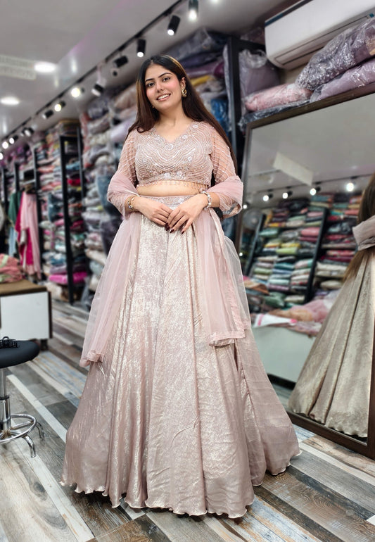 Designer Full Sleeve Blouse Flared Lehenga Choli - Imported Shimmer Fabric