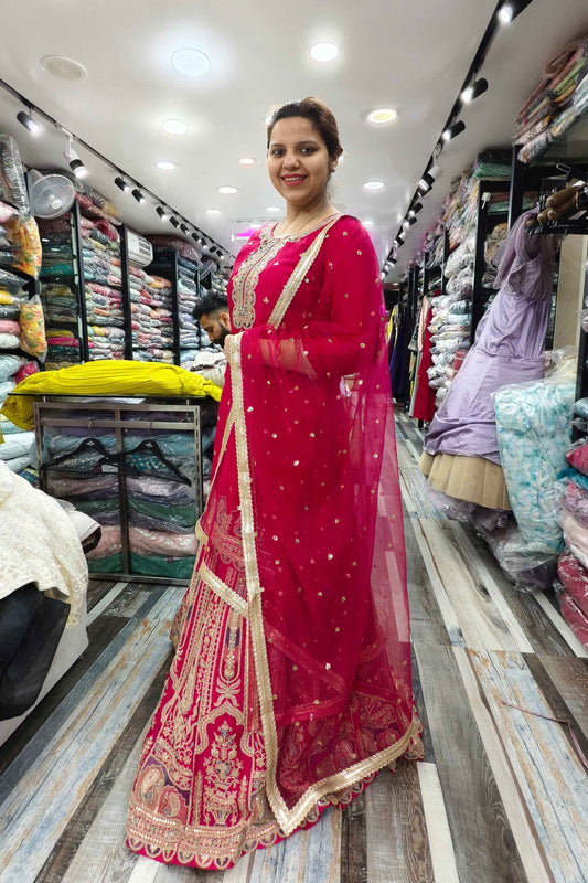 Chinnon Silk Indo Western Dress With Thread Sequence Work Multi Embroidered heavy lehenga With Duppatta