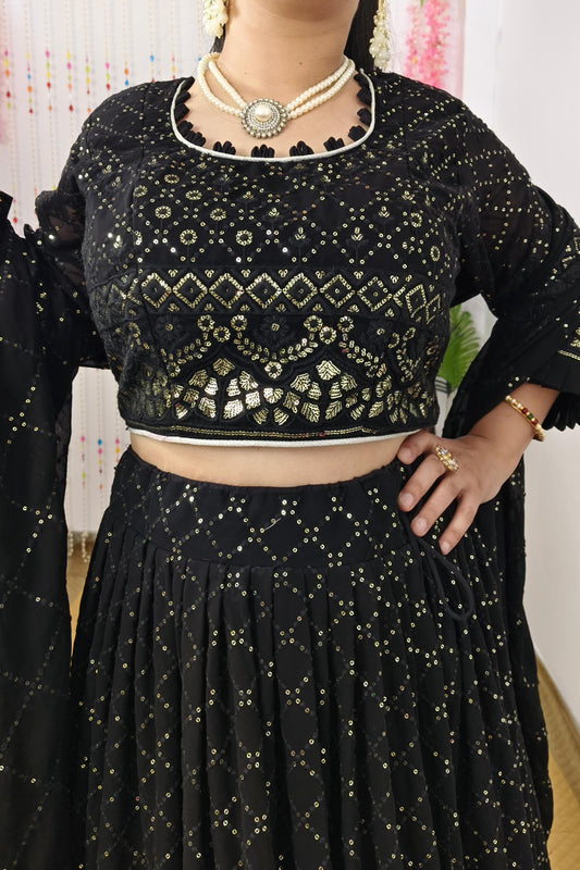 Chikan Thread Embroidered Sequence Work lehenga Choli In Black