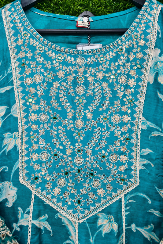 Beautiful Anarkali mirror and crochet lace embroidered kurta set with pants and dupatta