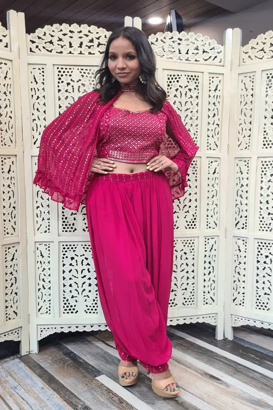 Crop Top Sharara With Designer Neck Duppatta In Wine