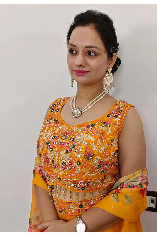 Designer Crop Top With Sharara Partywear Dress For Mehendi Occasion