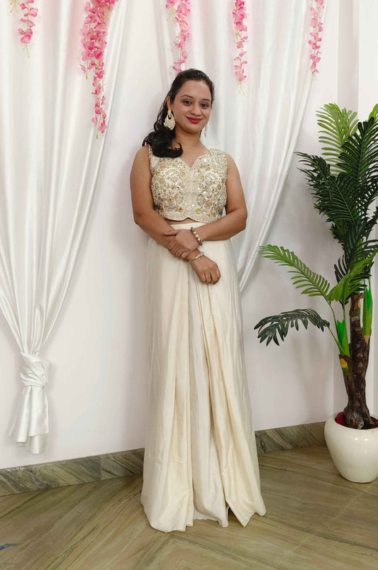 Crop Top Sharara Dress In Mirror Work Embroidery