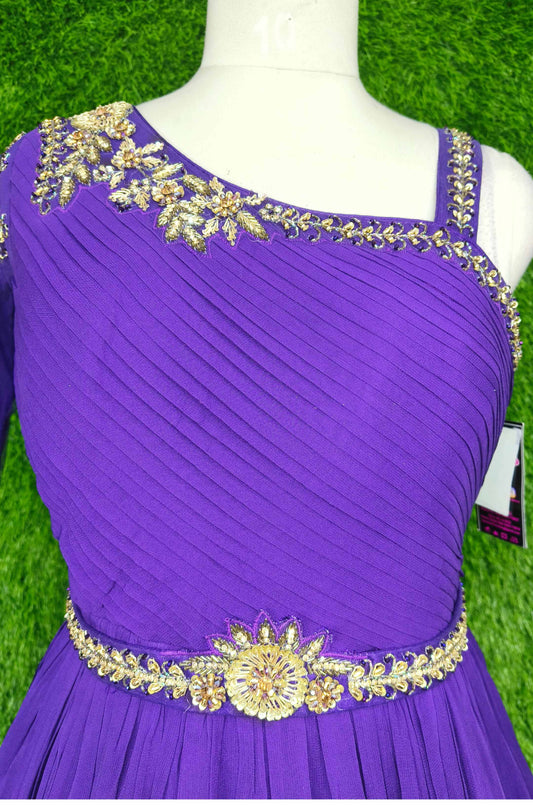 Beautiful Indowestern Side Shoulder Designer Dress With Long Duppatta Sleeve in Purple