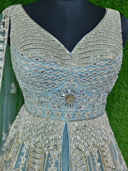 Beautiful Corset Style Embroidered Indowestern Anarkali Dress With Front Cut Designing