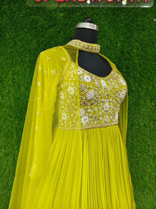 Shimmer Fabric Partywear designer Gown With Beautiful Yoke Designing