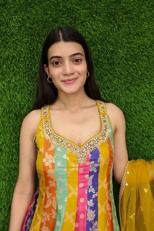 Banarasi Anarkali Multi Coloured Dress With Duppatta
