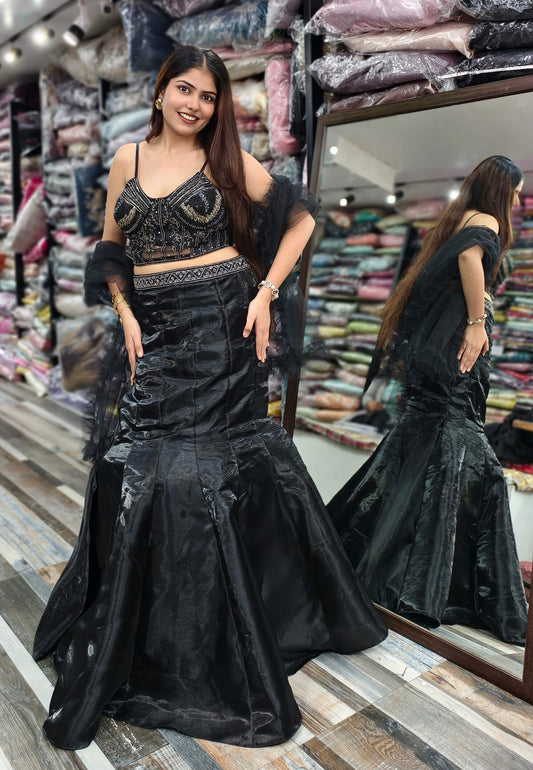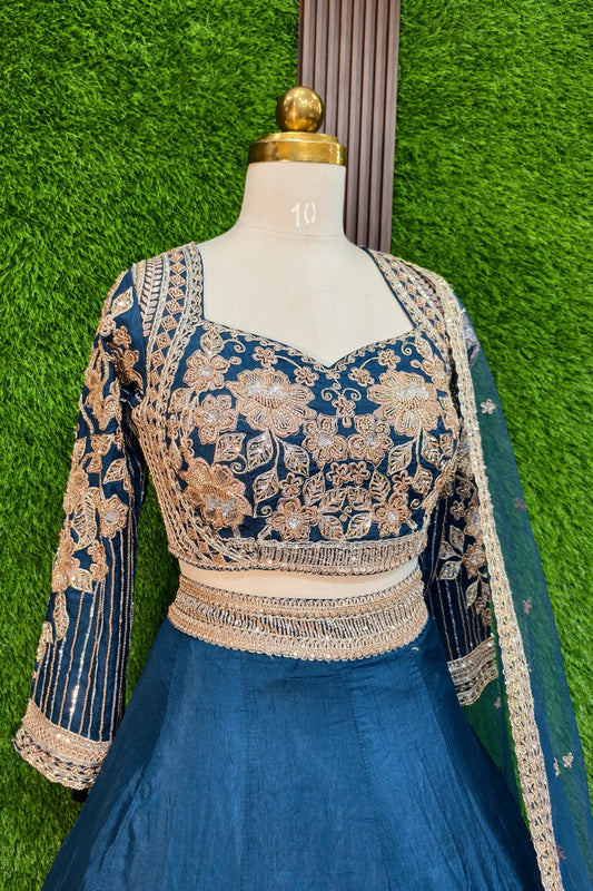 Designer Full Sleeve Blouse Flared Lehenga Choli - Imported Shimmer Fabric