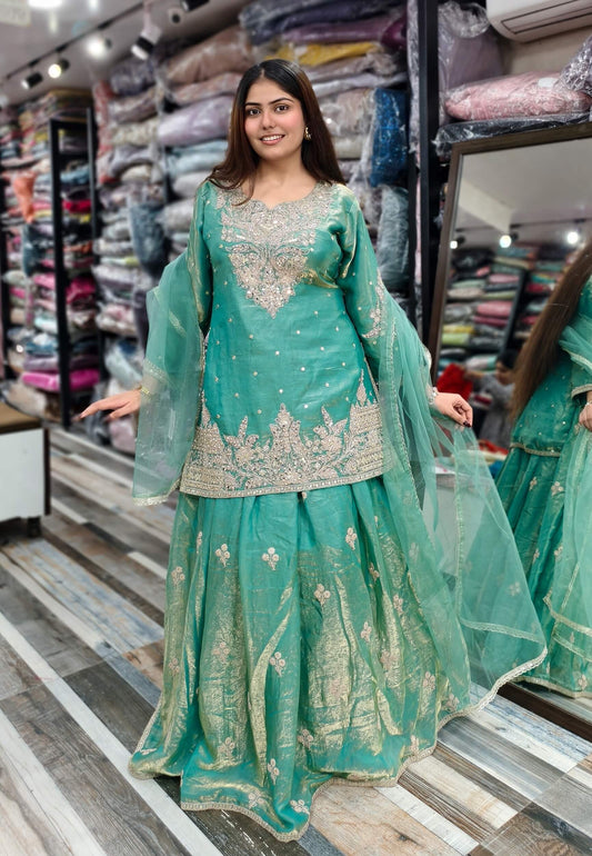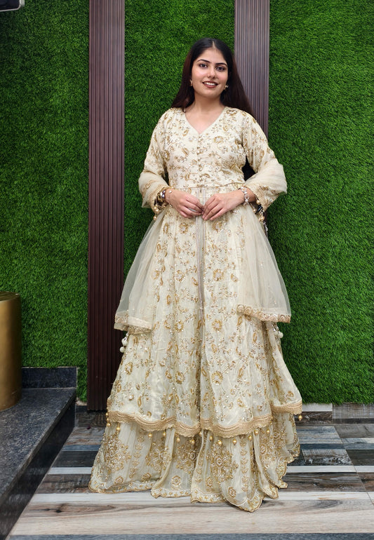 Organza Silk Dori Embroidered Indo Western Dress with Long Shirt