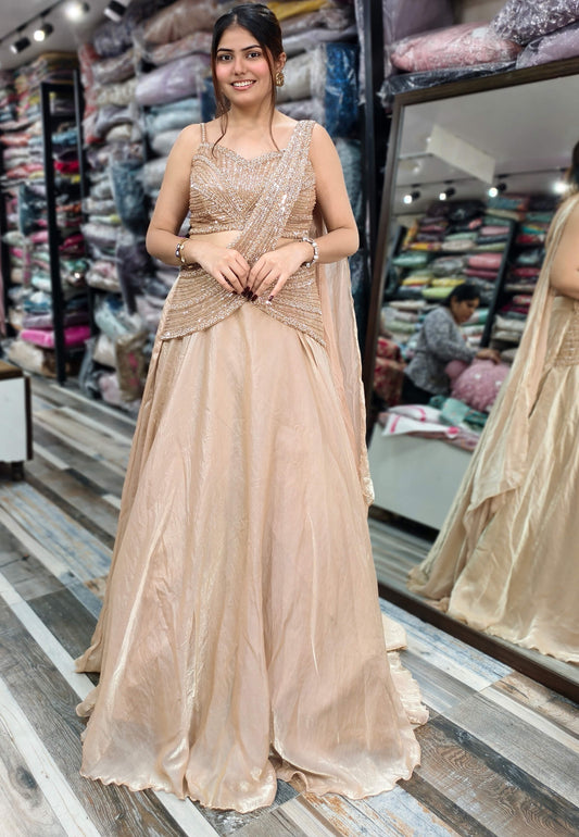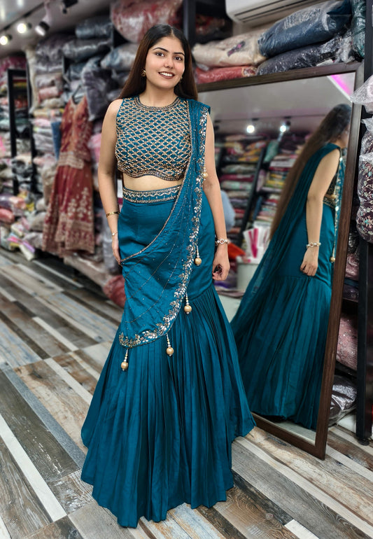 Girlish Connected Drape Style Hand Work Lehenga Choli with Spaghetti Blouse