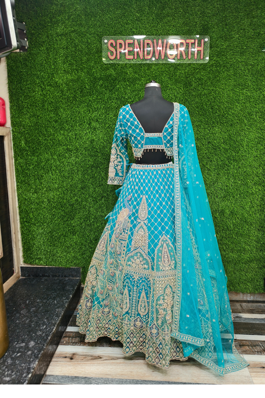 Beautiful Hand Embroidered Lehenga Choli on Silk Net.