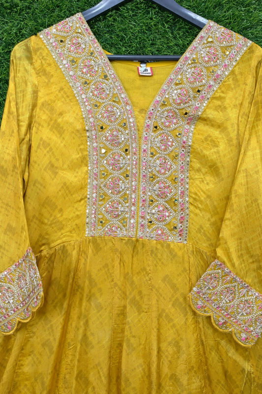 Beautiful Jacquard Cotton Anarkali Kurta set With Duppatta In yellow