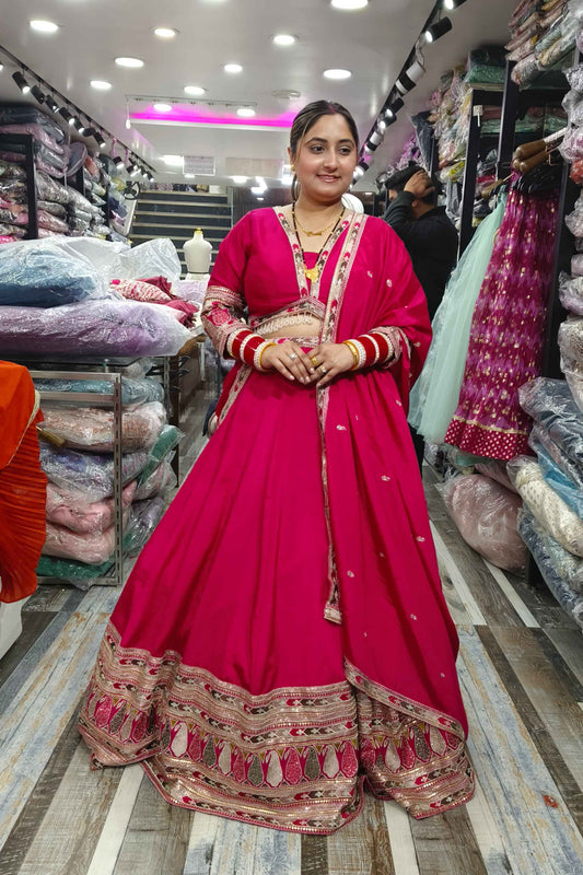 Pure Silk Anarkali Lehenga Choli In Hot Pink