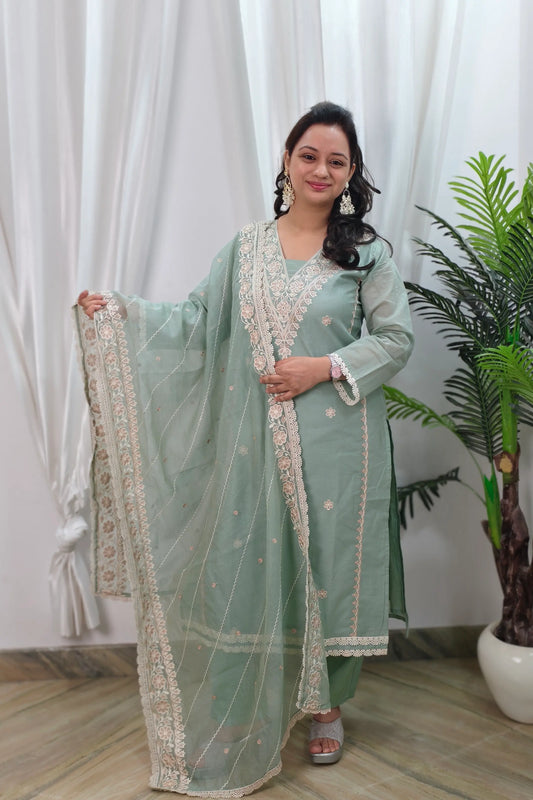 Straight Pakistani Partywear Suit With Organza Duppatta