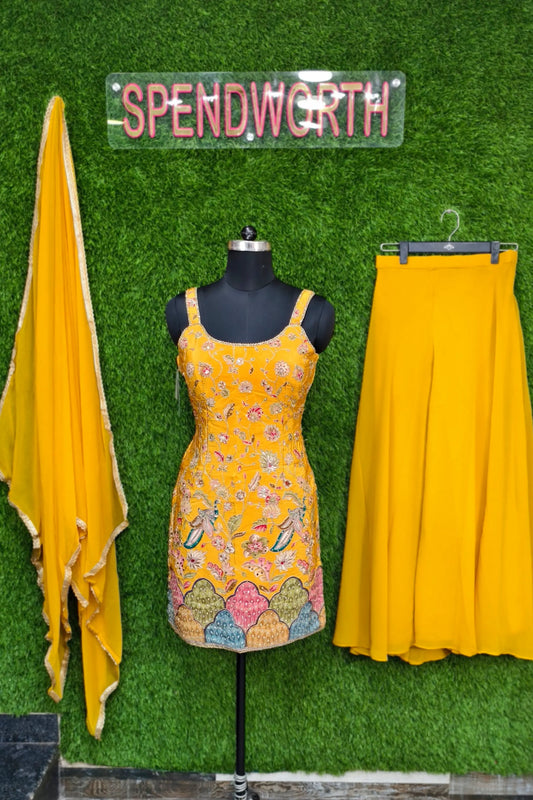 Printed Crop Top Skirt with Shrug for Haldi Ceremony