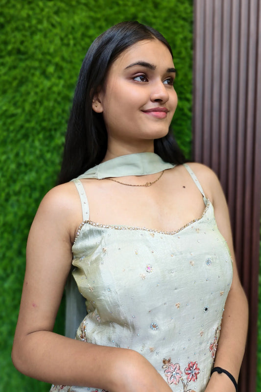 Partywear Indo Western Dress With Full Hand Embroidered Blouse