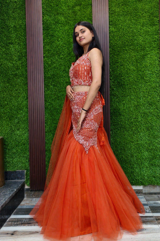 Beautiful Hand Embroidered Fish Cut Lehenga Choli Dress