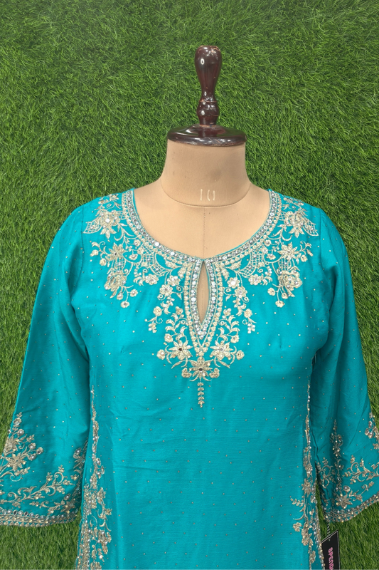 Mirror Work long Anarkali Partywear Suit with PLazo.