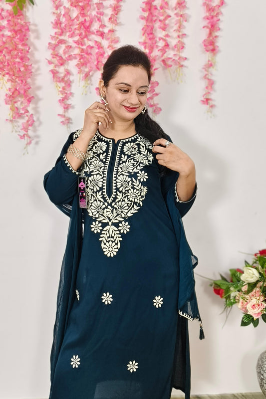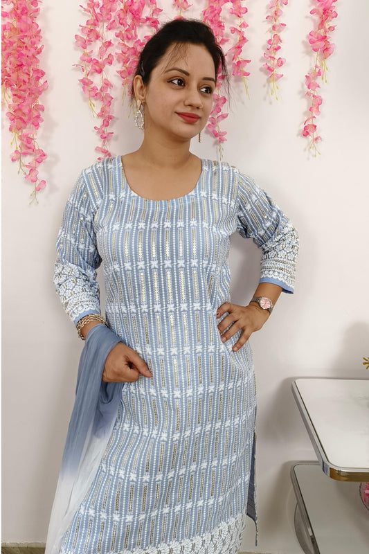 Straight Summer Suit Set With Chiffon Duppatta In Blue