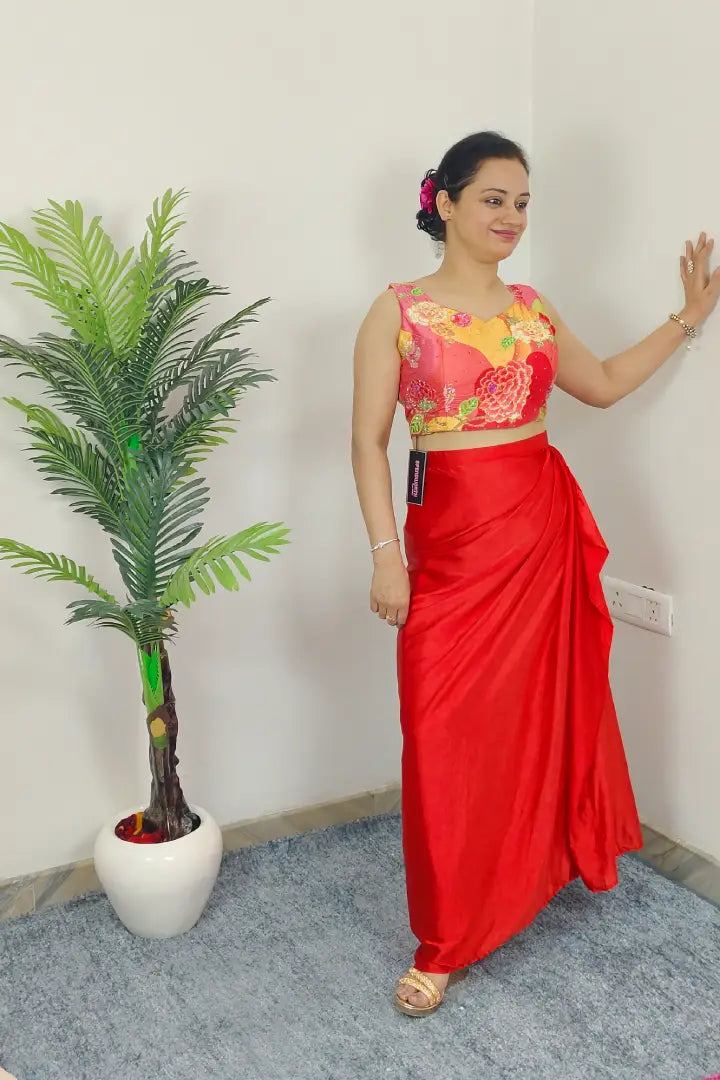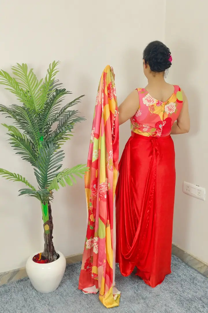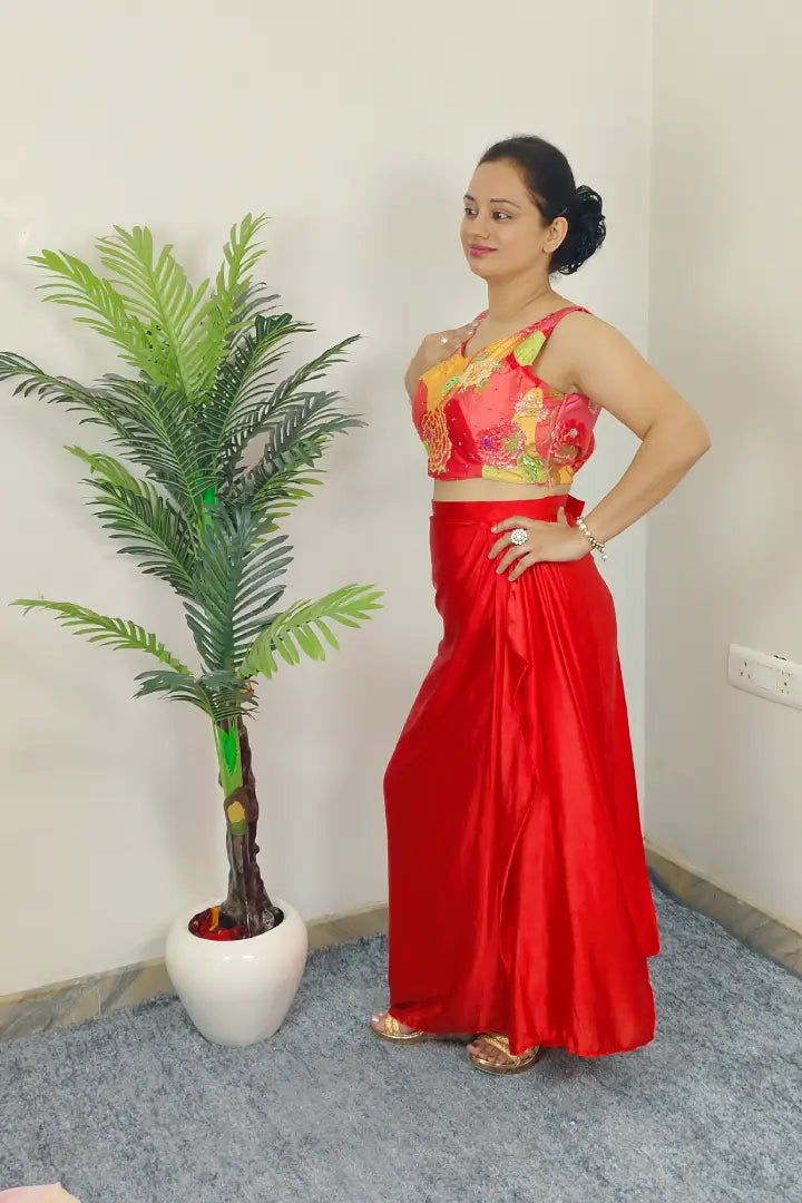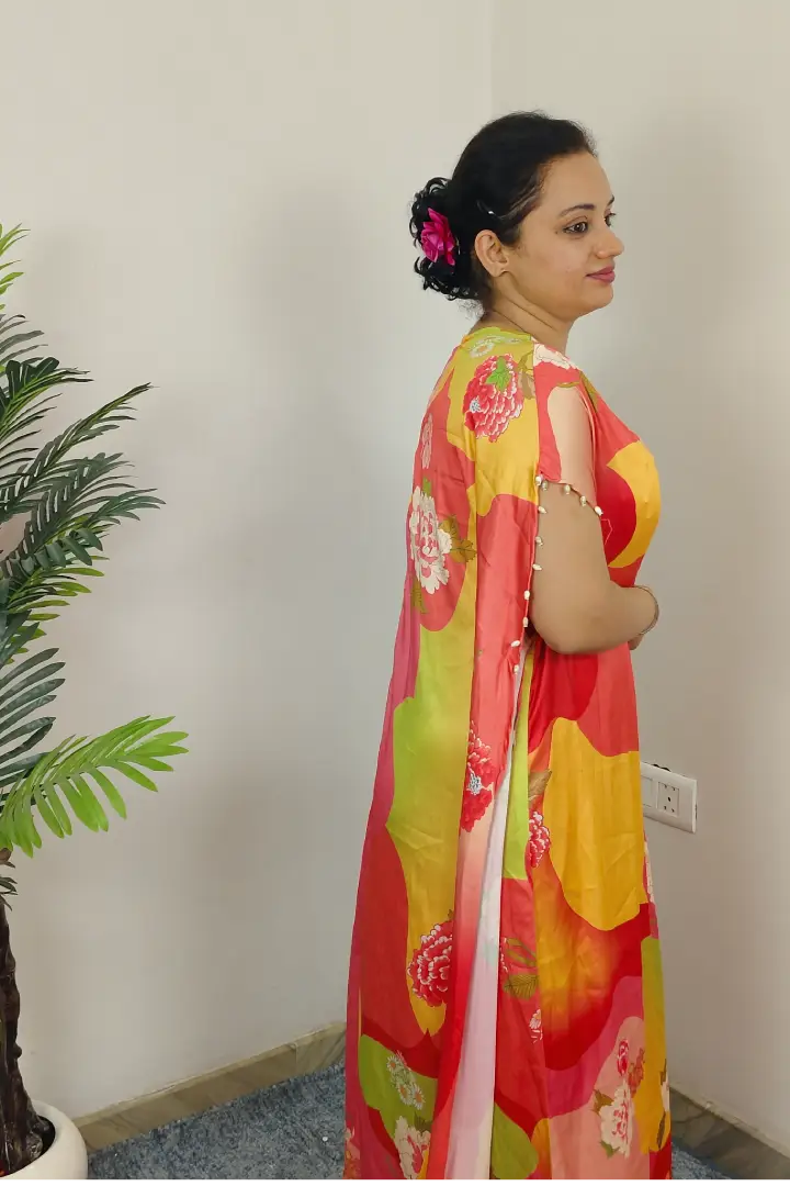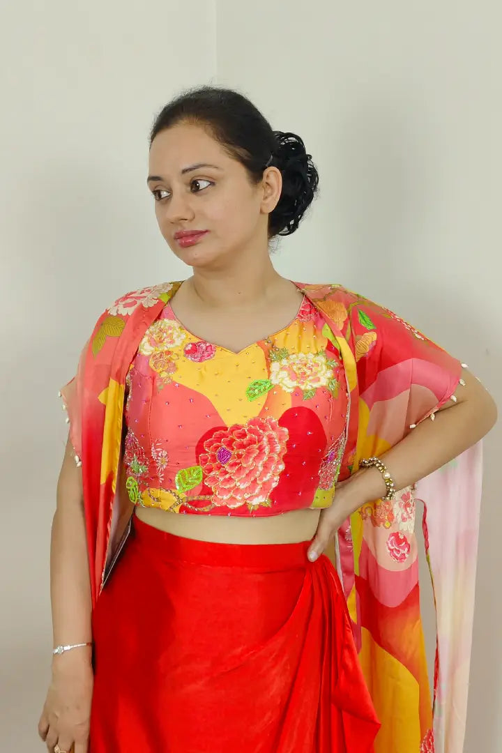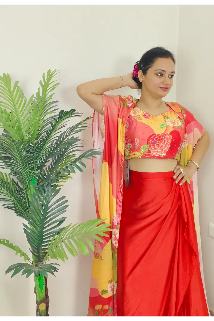 - Stylish Design: Our orange cowl-style Indo Western dress with a shrug is a stylish and trendy choice for any occasion.