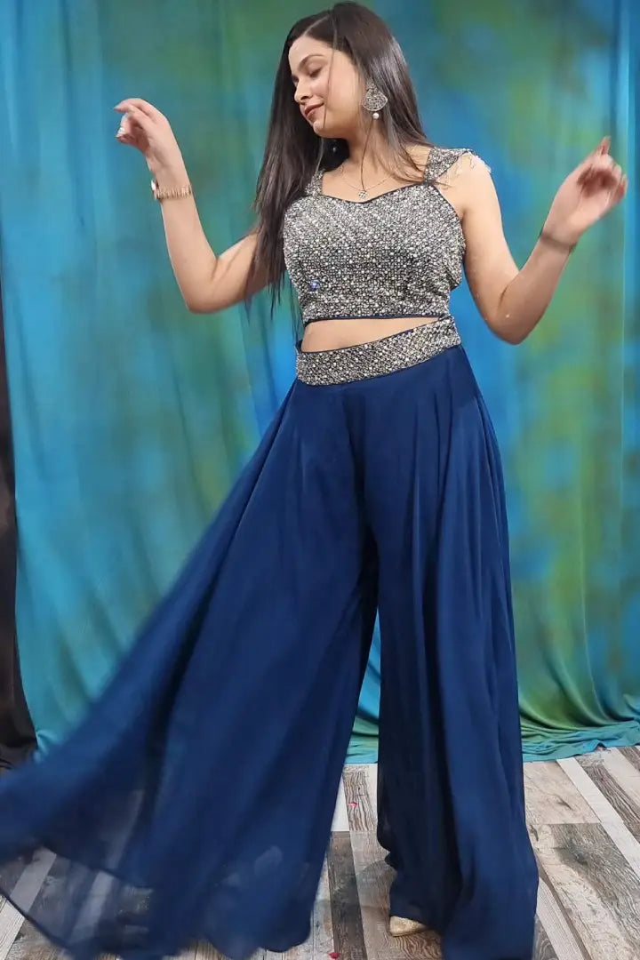 Beautiful Party Wear Kaftan Set with Mirror Work Embroidery