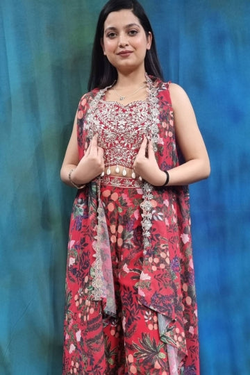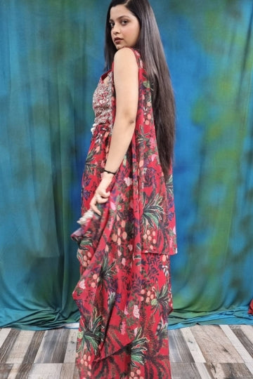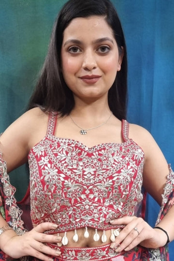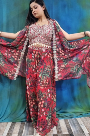 - Zari Work Embroidery On Crop Top And Cape Shrug