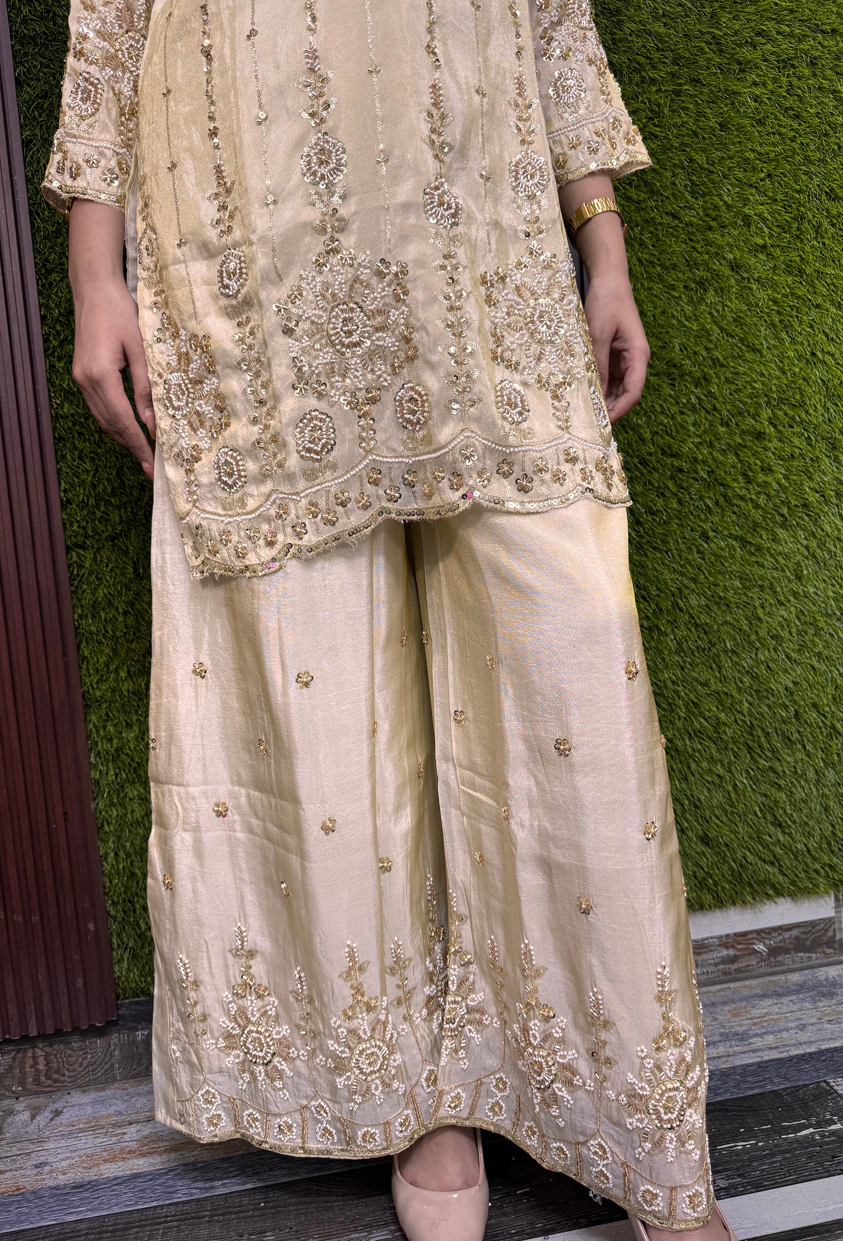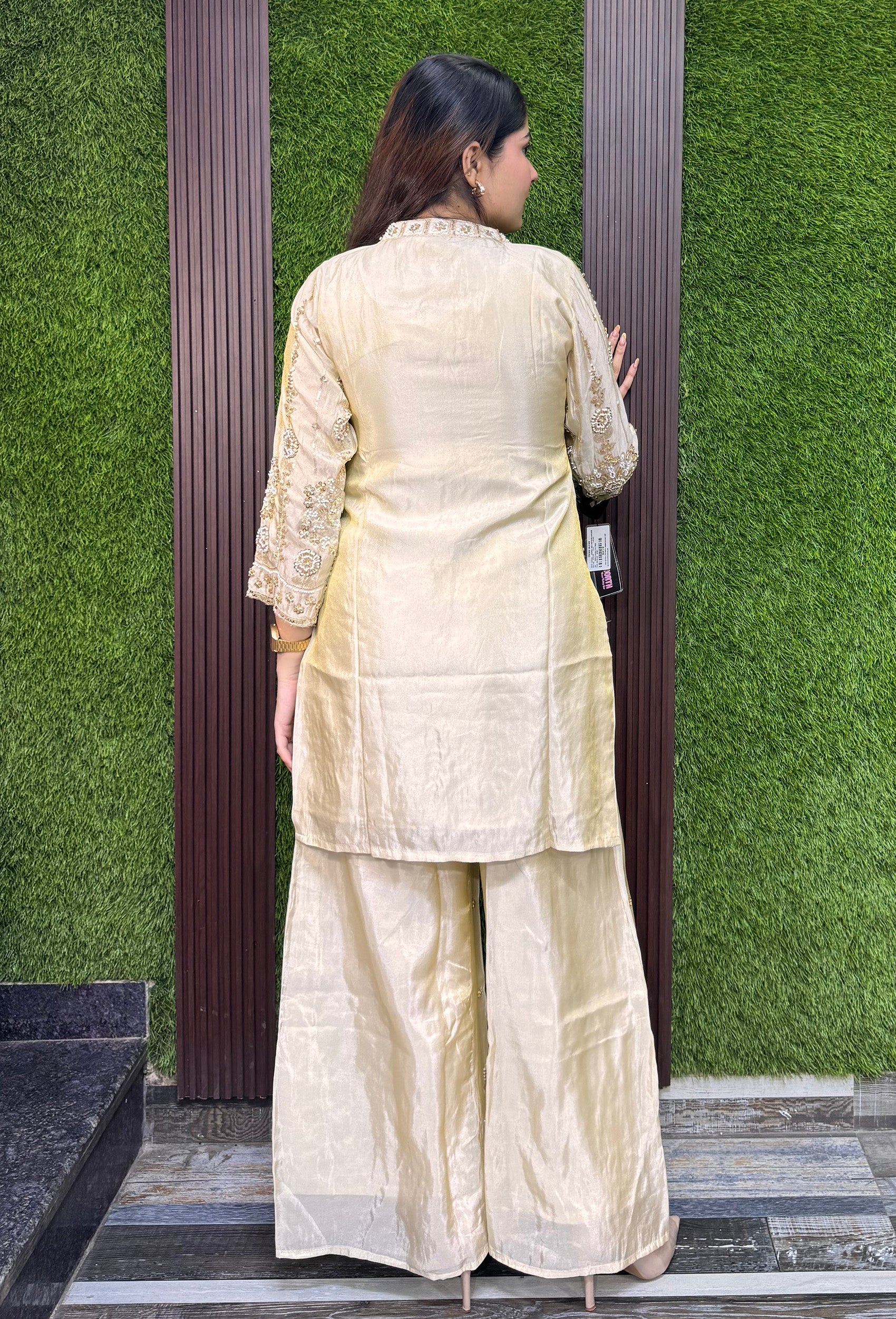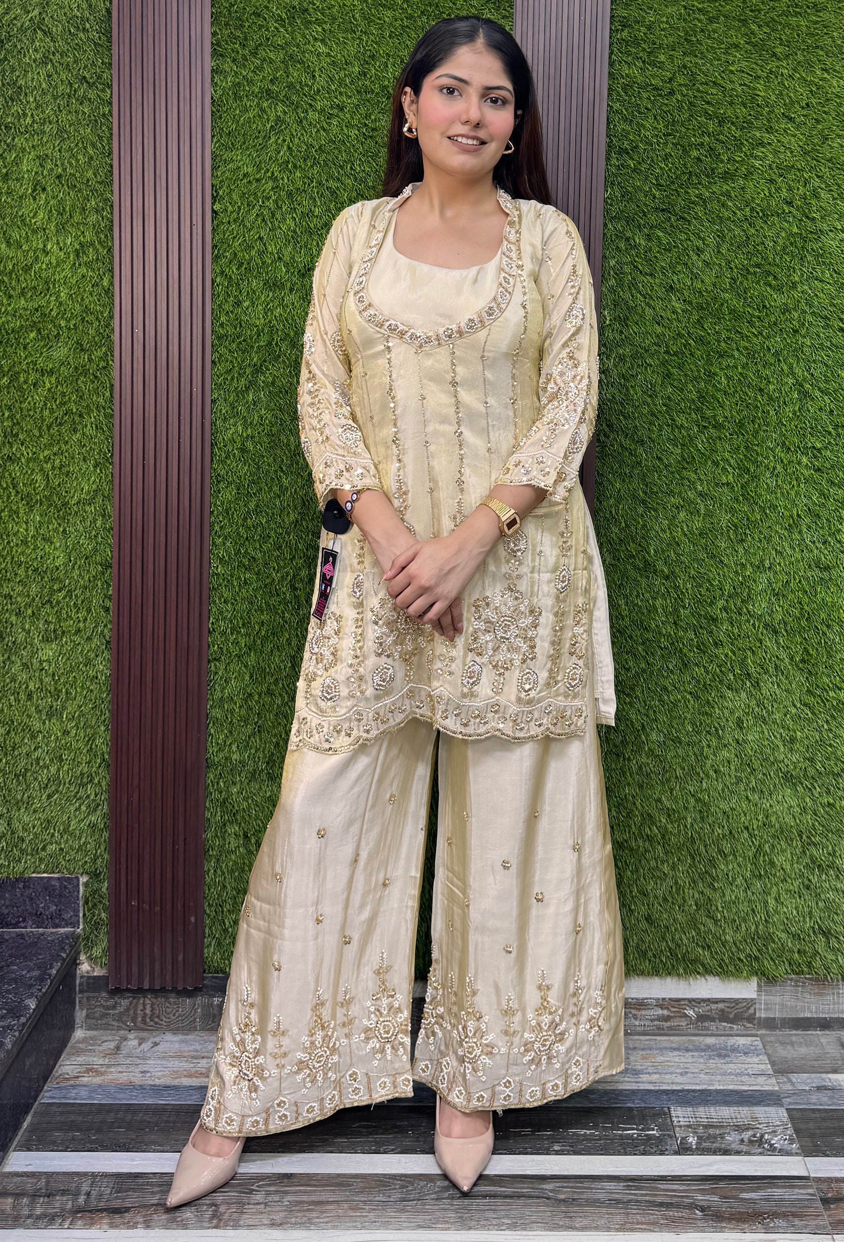 Step into contemporary glamour with this stunning Partywear Cord Set, thoughtfully designed for modern elegance and effortless style. Crafted with intricate hand embellishments, this ensemble radiates a luxurious and designer appeal, perfect for making a bold fashion statement.