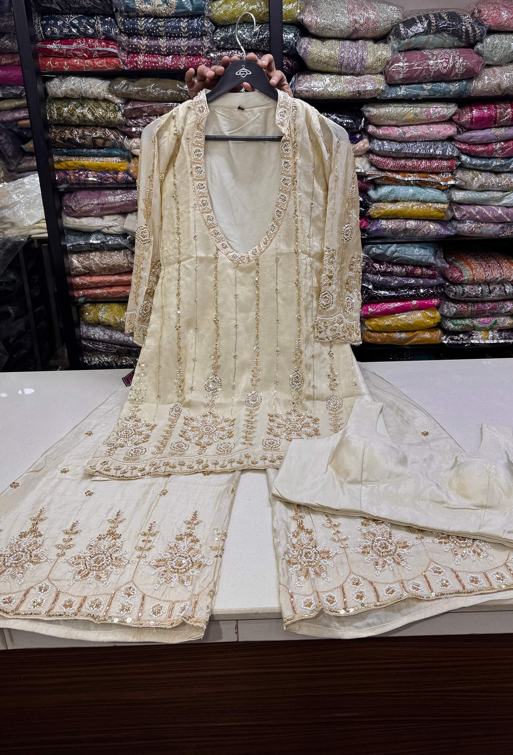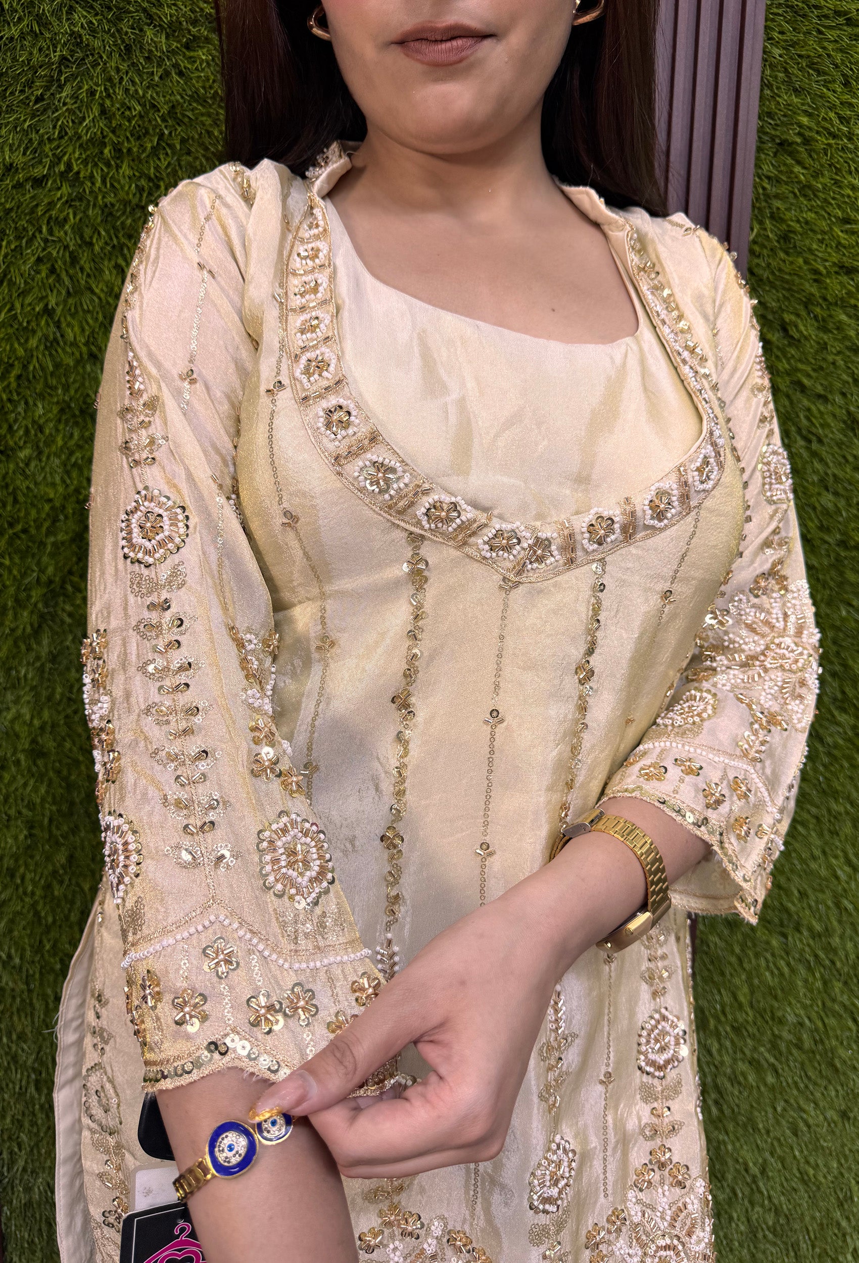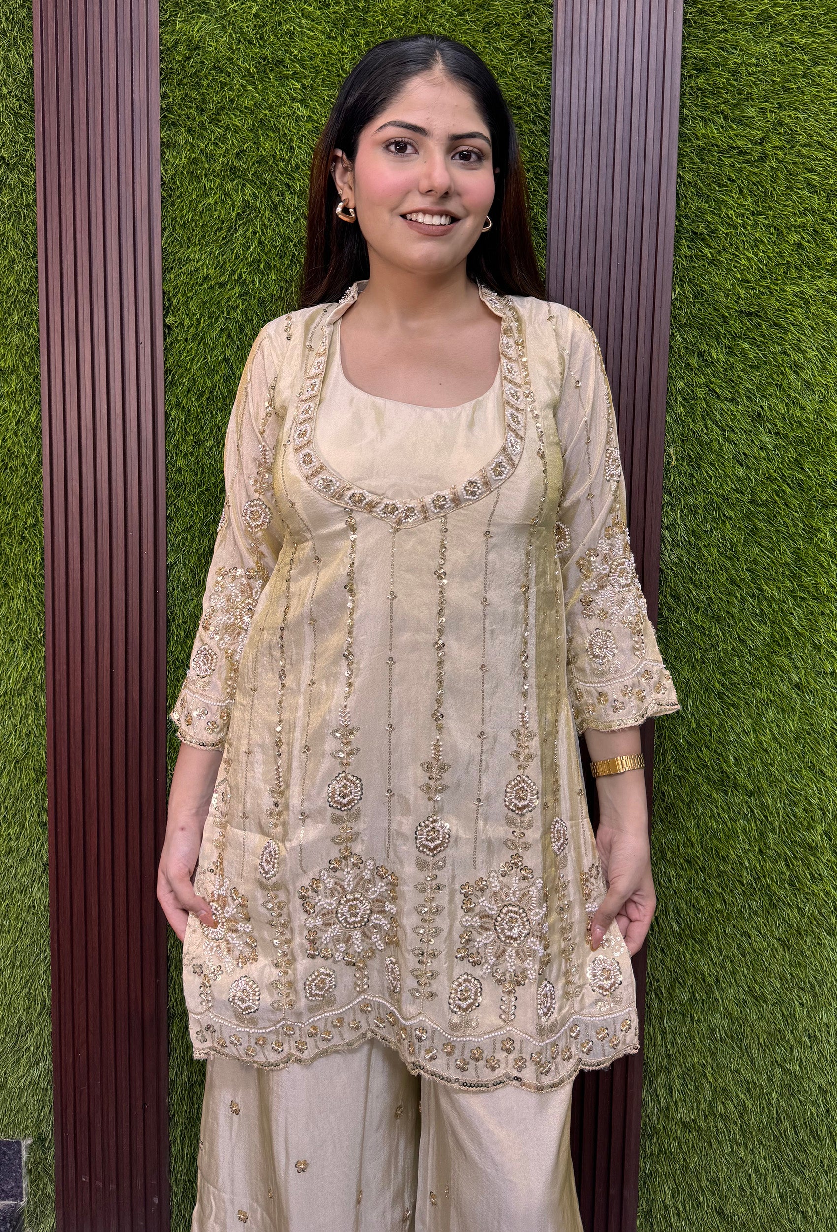 Step into contemporary glamour with this stunning Partywear Cord Set, thoughtfully designed for modern elegance and effortless style. Crafted with intricate hand embellishments, this ensemble radiates a luxurious and designer appeal, perfect for making a bold fashion statement.