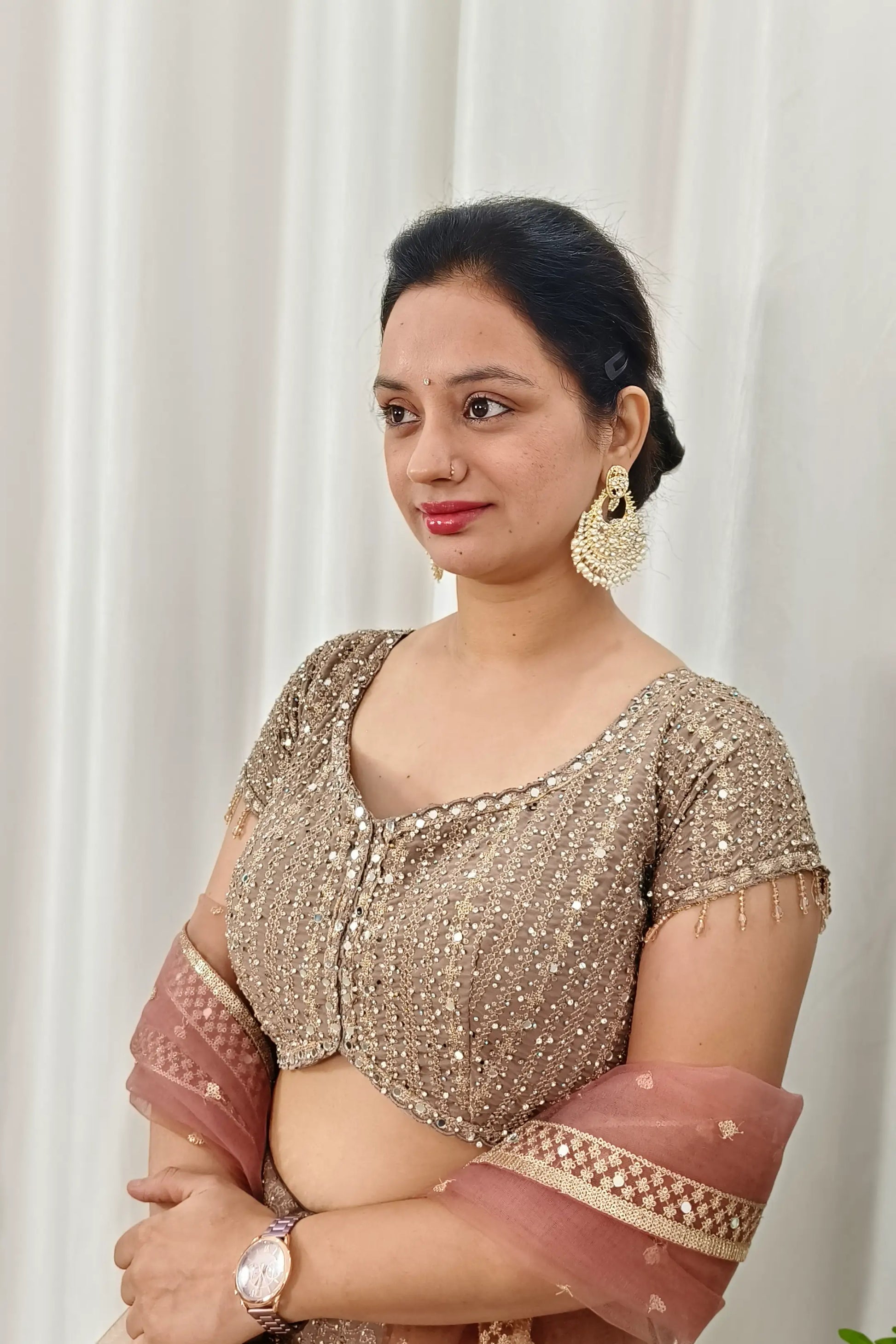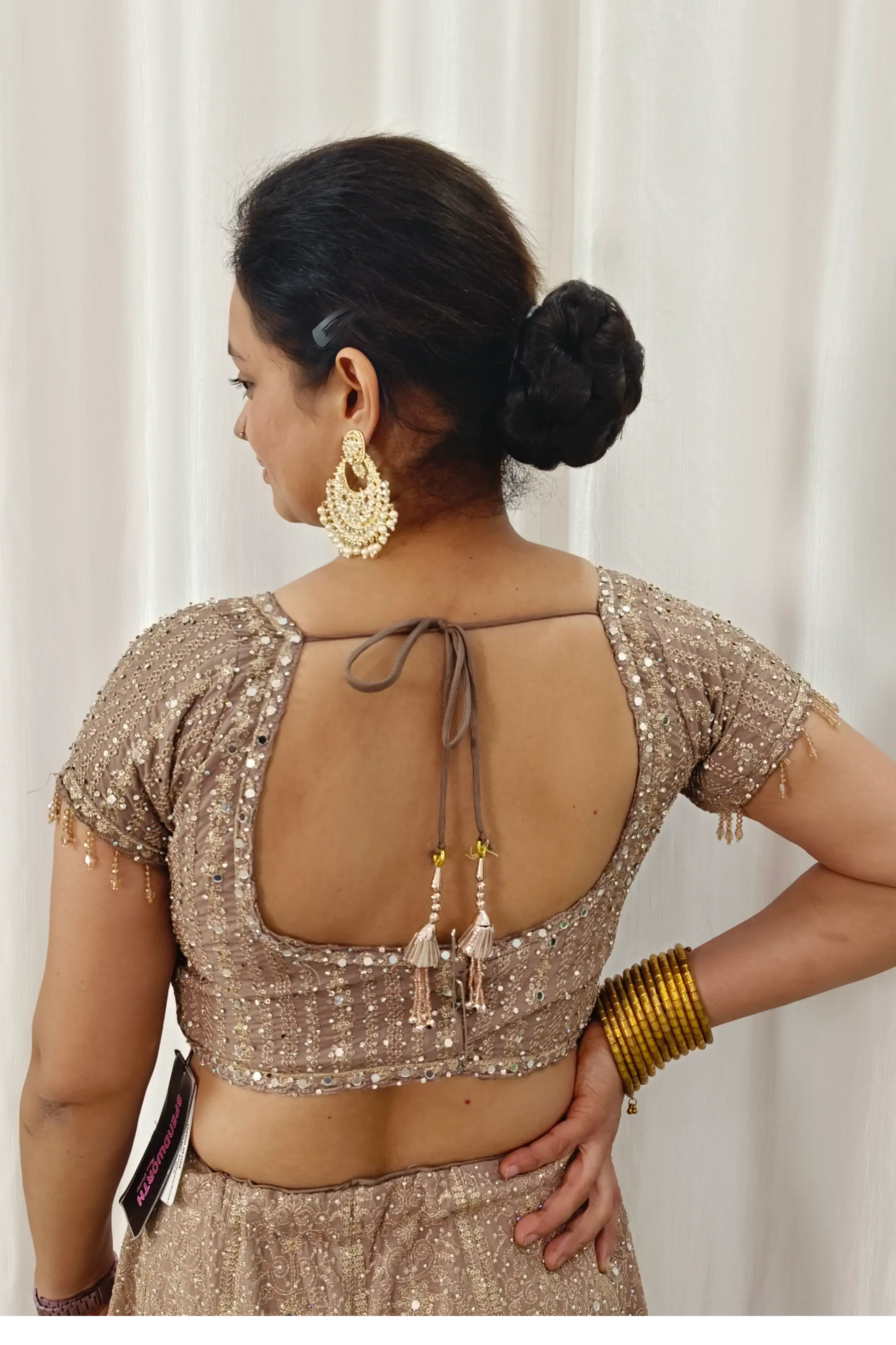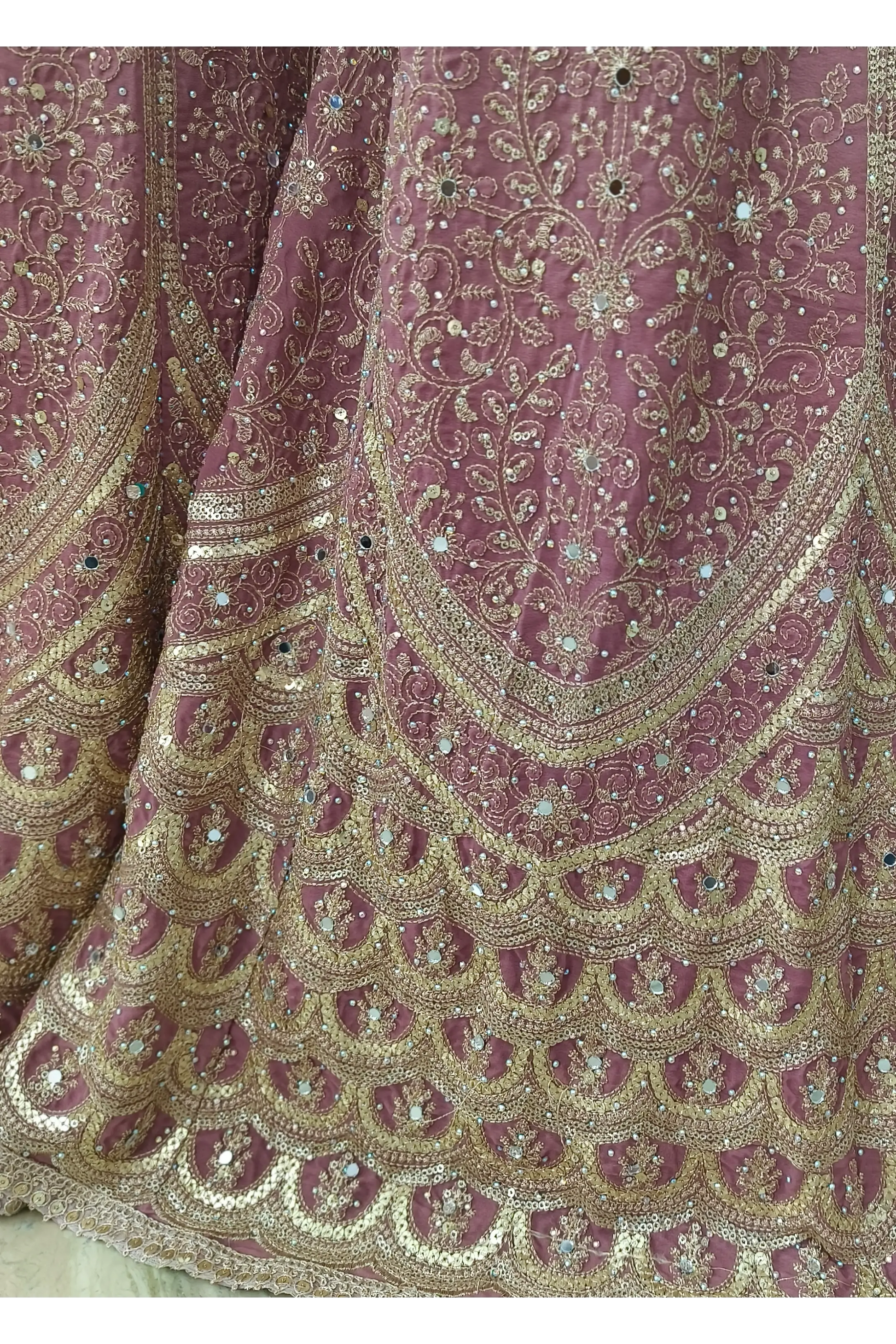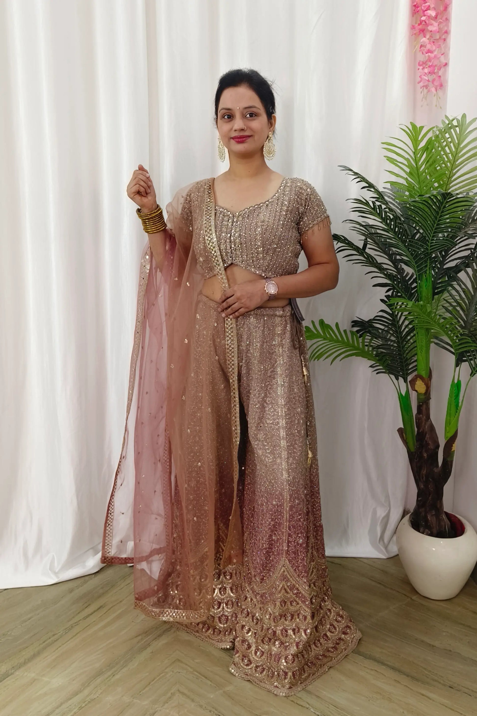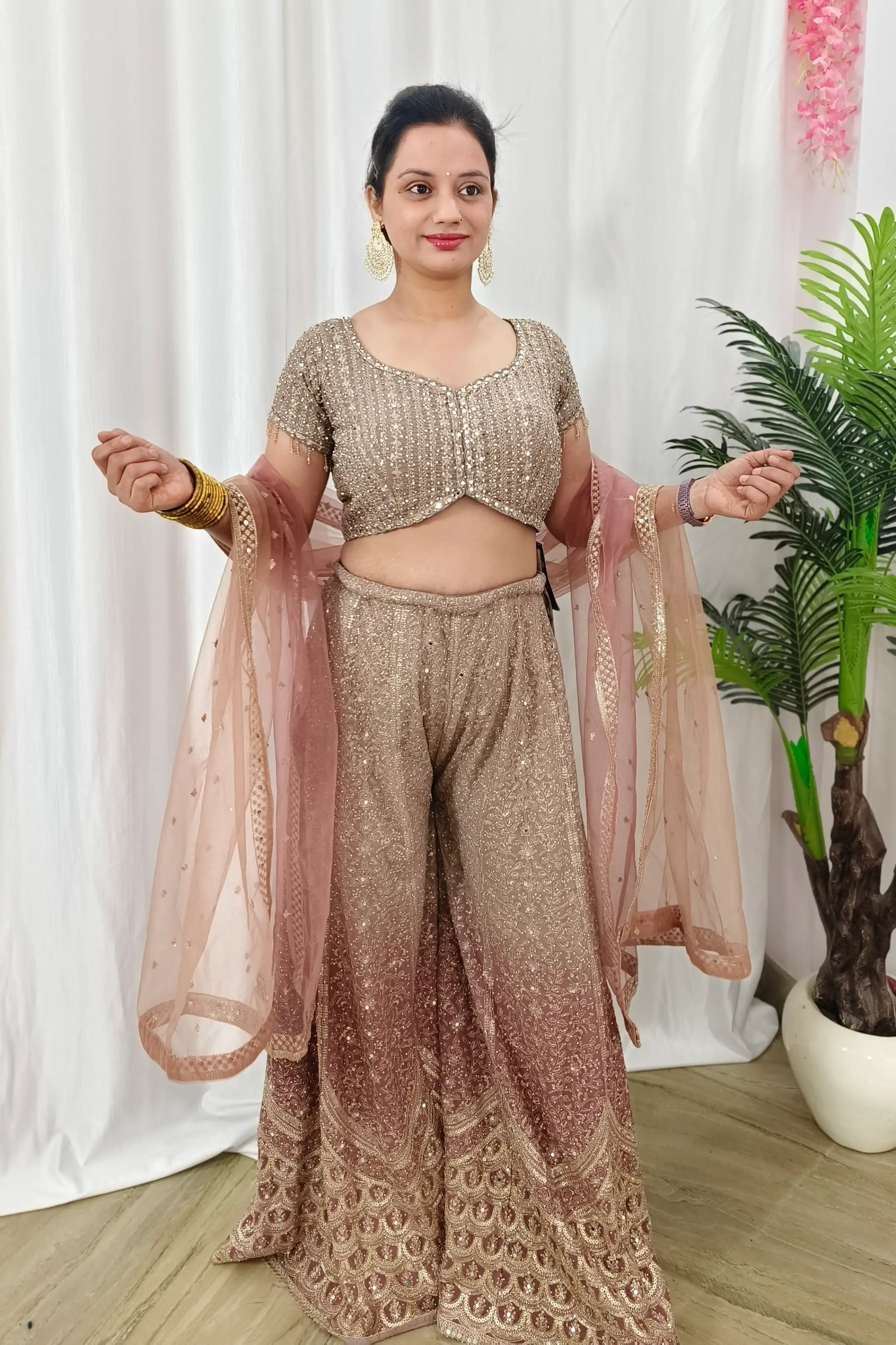 Heavy Embroidered Viscouse geortgette crop Top Sharara Dress With Duppatta in Shaded Mauve