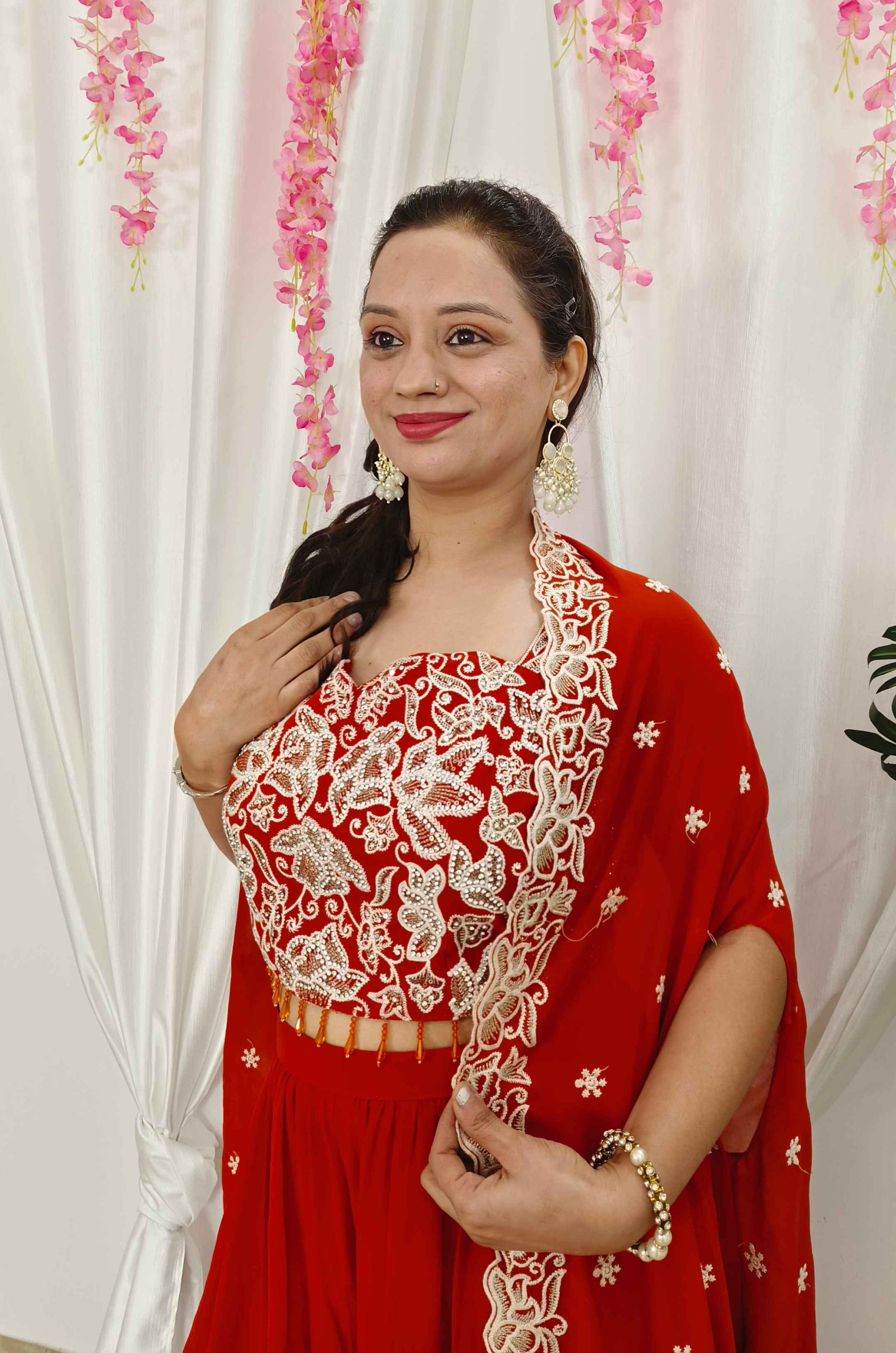 Peplum Style Indowestern Dress With Skirt And Choker Duppatta