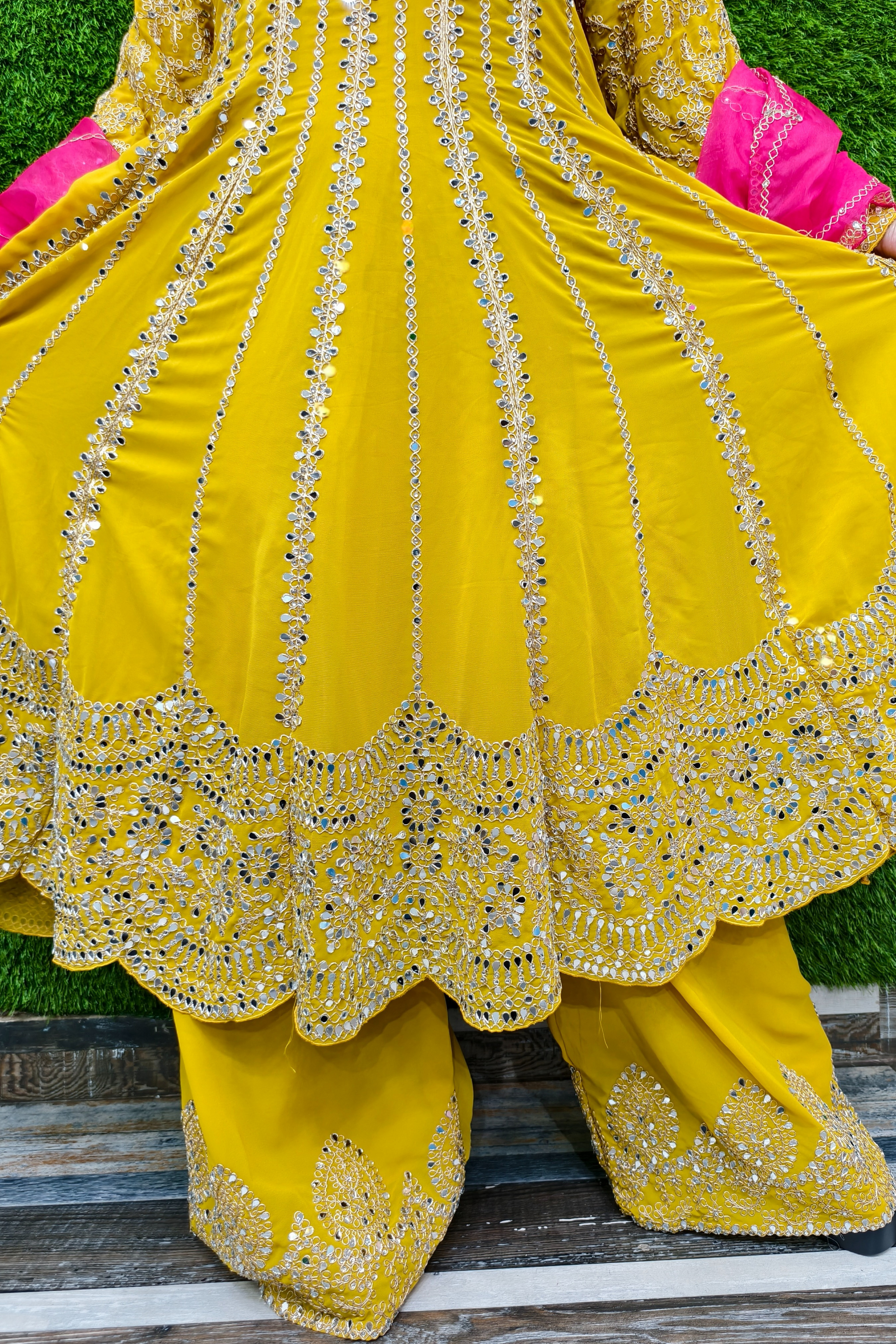 Mirror Work long Anarkali Partywear Suit with PLazo.