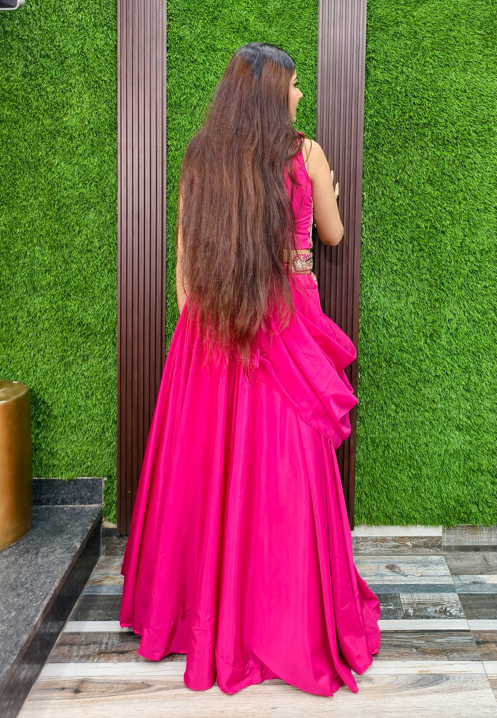 Shirt Collar Style Embellished Lehenga Dress with Pleated Silk Skirt
