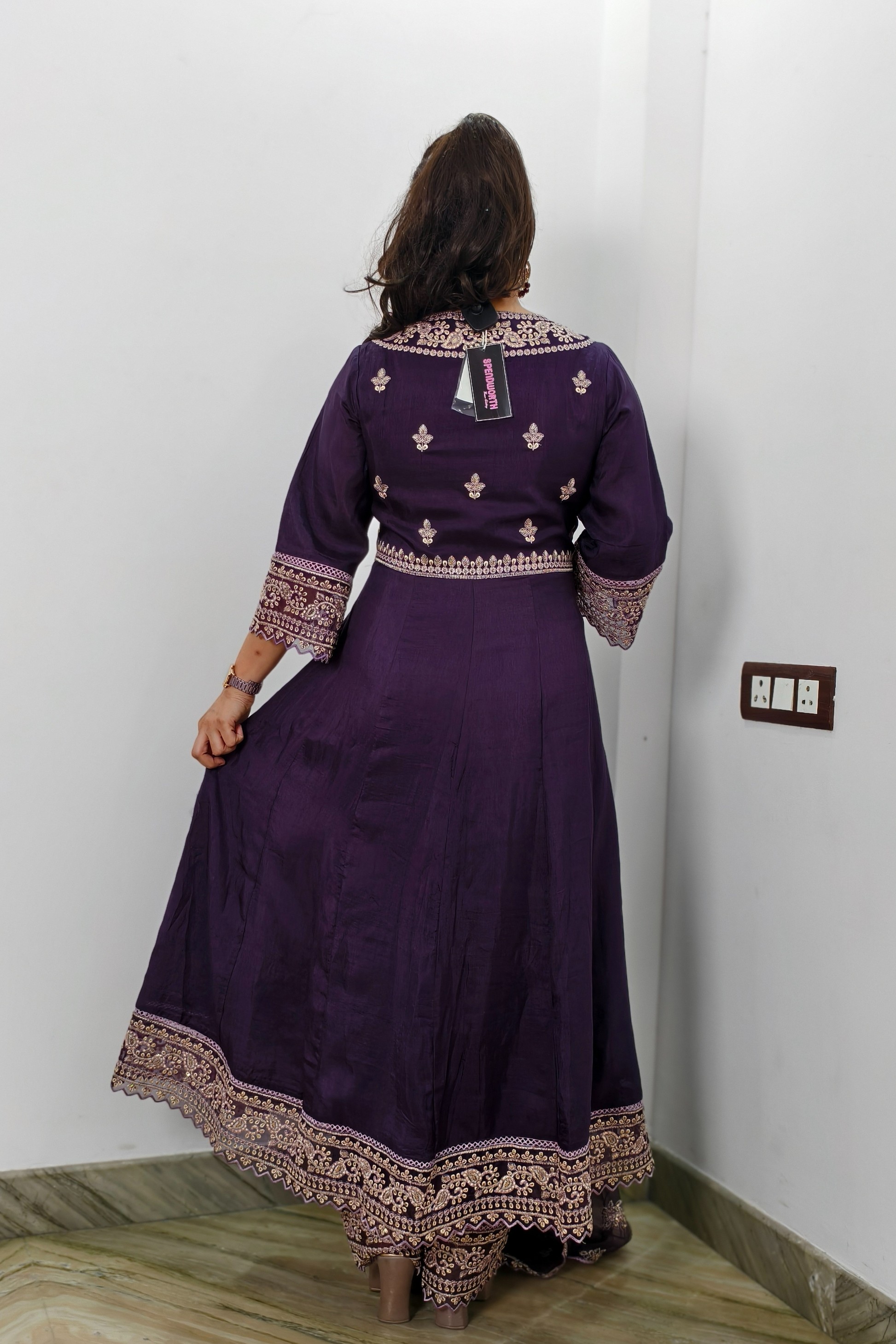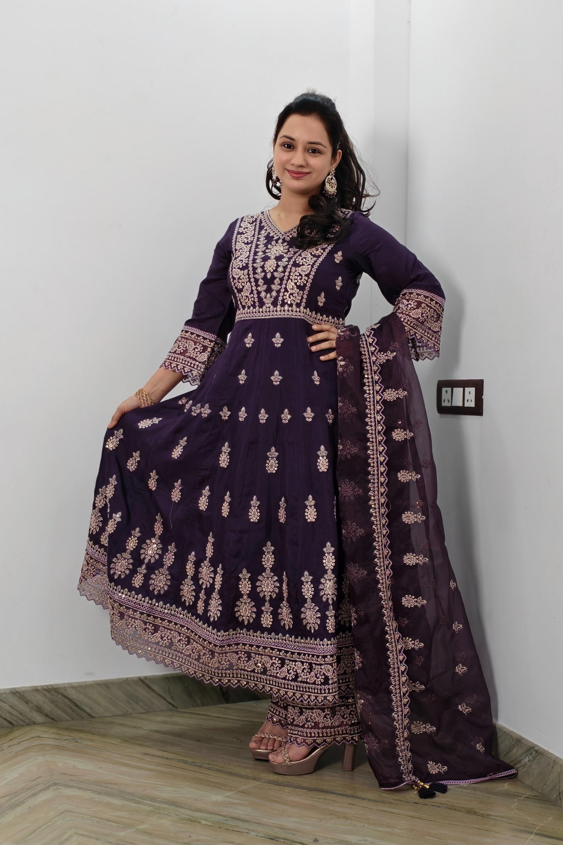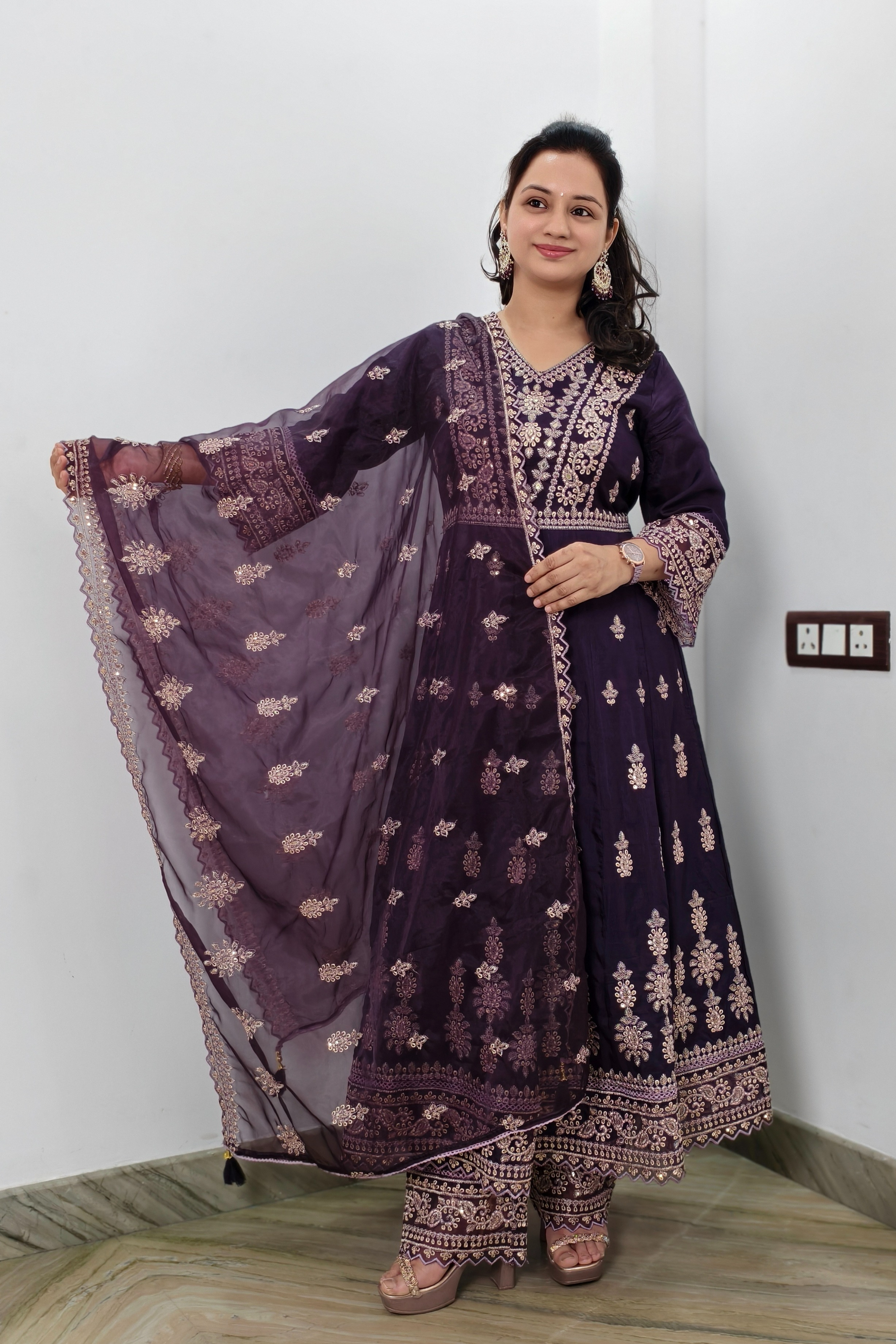 Muslim silk Thread work Anarkali Pakistani suit set with dupatta